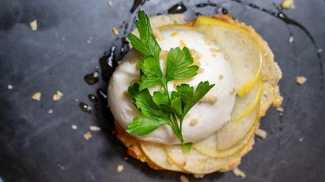 Tartare di manzo su crema di burrata e pomodoro secchi