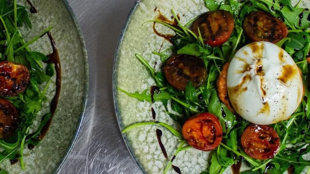 (Mozzarella, mortadella, burrata, pistachos y aceite de trufa)