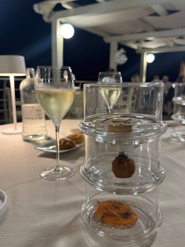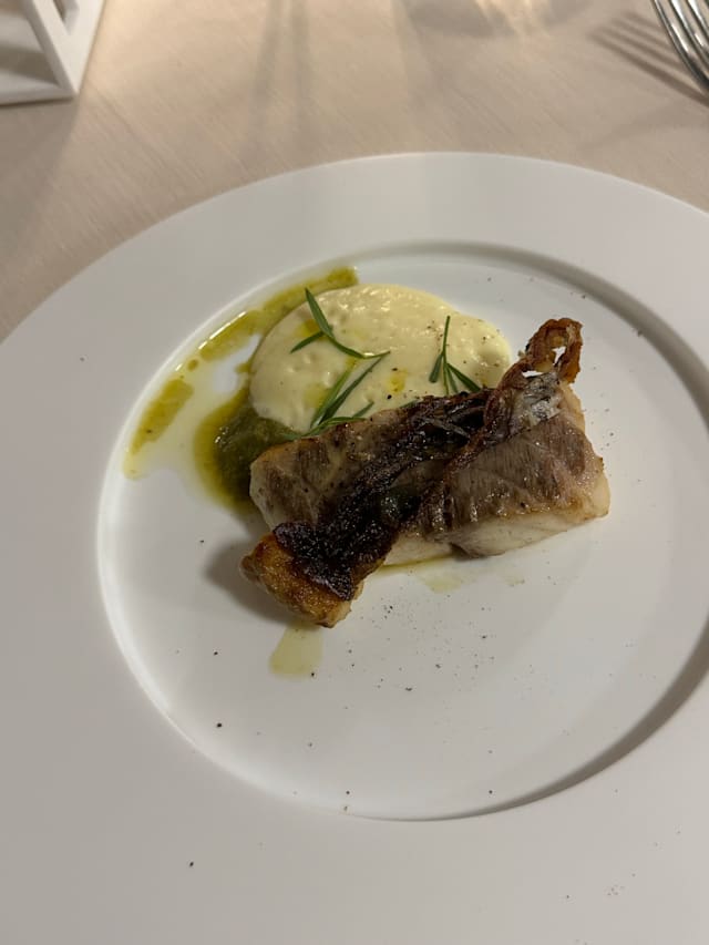 9/10Beachfront restaurant with terrace on first floor and beautiful seaview. Very friendly service. Creative cuisine, in particular amuse geule and starter (we had Capesanta alla plancha in brodo thai), which was tasty. As main course we had fish, Pescatrice (monkfish) and Ombrina (croaker), which could have had a somewhat stronger flavour, however, was also good. The portions are of varying sizes, not big but also not small. In general, upper price range, however, in terms of location and quality very good value for money.