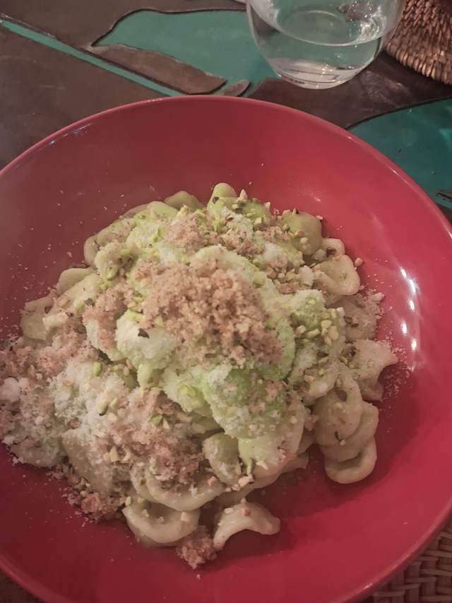 - Orecchiette crema di broccoli, granella di pistacchio e crumble alle erbe