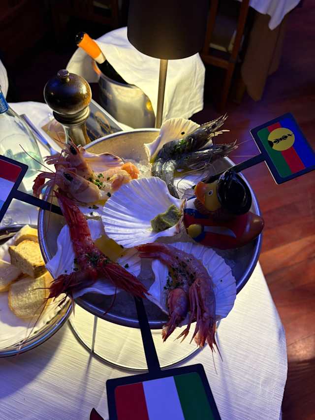 - Scampi, gamberi rossi/blu/viola con tartare di alghe
