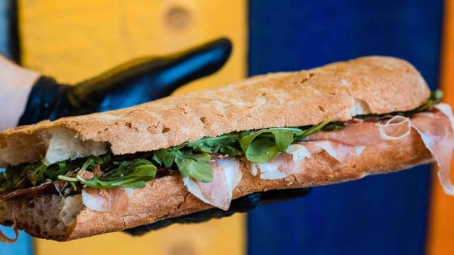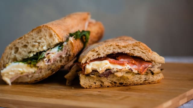 (Porchetta di Ariccia I.G.P., pecorino di Pienza, melanzane grigliate, pomodori freschi, maionese Biffi)