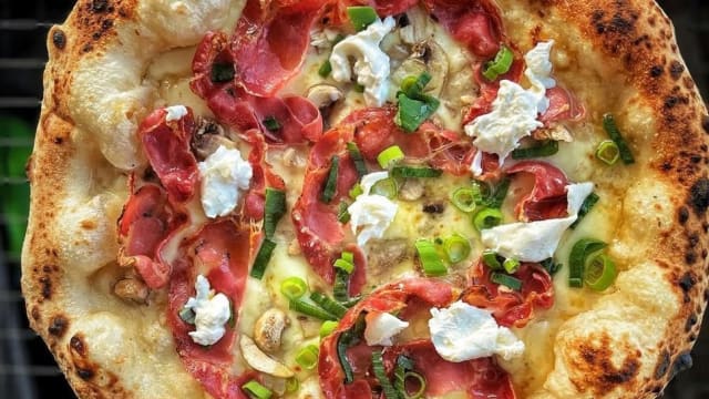 Impasto base pizza, fritta, ricotta, prosciutto cotto