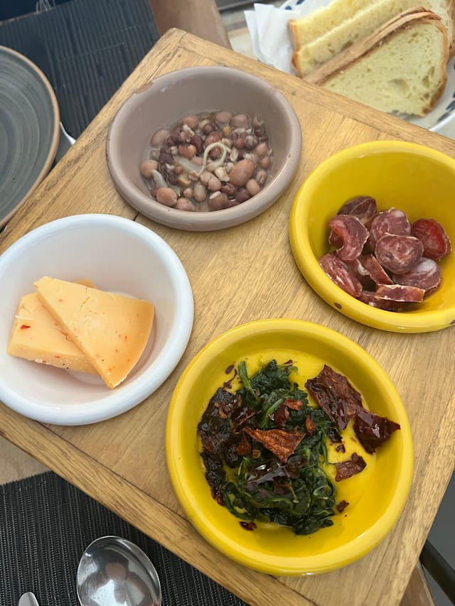 7.5/10The sharing boards full of little bowls were fun and generally the food was of good quality although some dishes stood out more than others. Service was fine, fairly friendly and some very good off, inexpensive and off menu wine recommendations. Felt slightly quiet and cold even though most tables were full. Could do with some music or something... would still recommend!