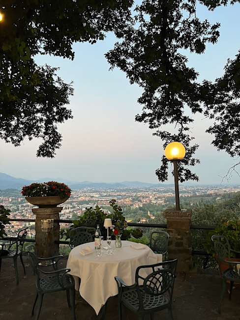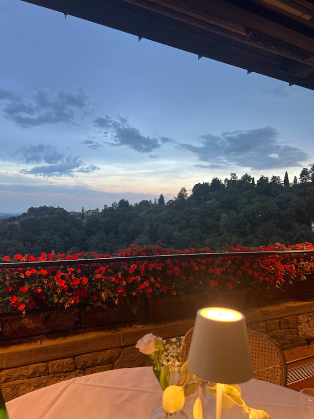 10/10The restaurant is set in a truely picturescue location controlling almost 360 degree views over Bergamo and the beautiful surrounding hills. The service, food and wine are exceptional with really friendly staff who are profesional and really helpful. The location is also perfect for weddings, parties and other events. I’d love to go back and can’t recommend it enough to anyone wishing to visit!