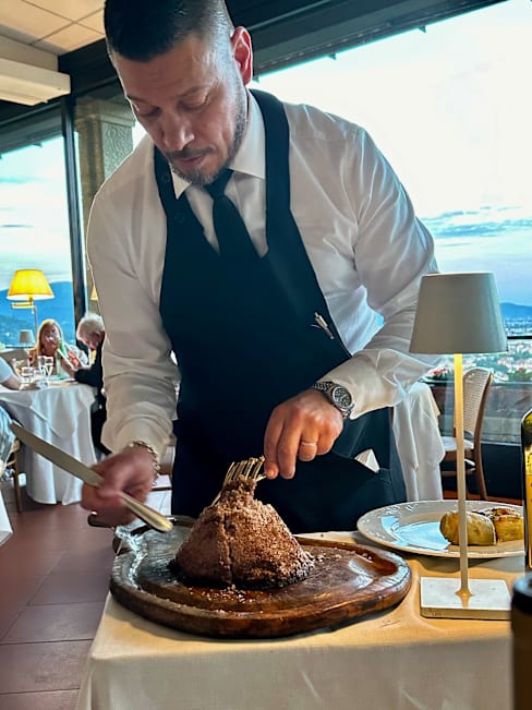 10/10Fantastic view over the surroundings- come before sunset. Food was top quality-enjoyed tuna tartar and t bone steak with a good chianti. Very friendly service.