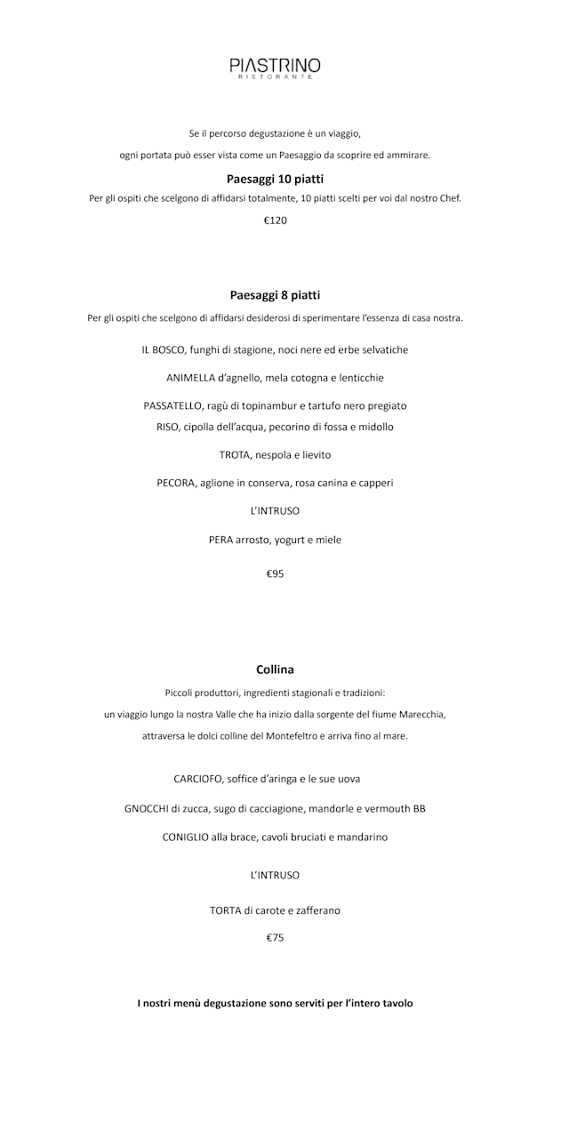 10/10We have been at Il Piastrino for lunch. From the welcome to the end the service was great. Everyone was super friendly and hosting. We decided on the four courses Root Menu. The dishes of the menu and the different Amuse-Bouche were fantastic. The Lattuga alla brace, latticello e caviale is one of the best dishes we have ever had. Thanks a million to Riccardo, Claudia and their team for this great experience.