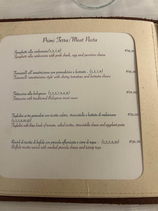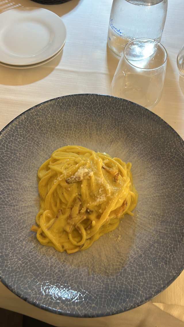 - Spaghetti alla carbonara with pork cheek, egg and pecorino cheese