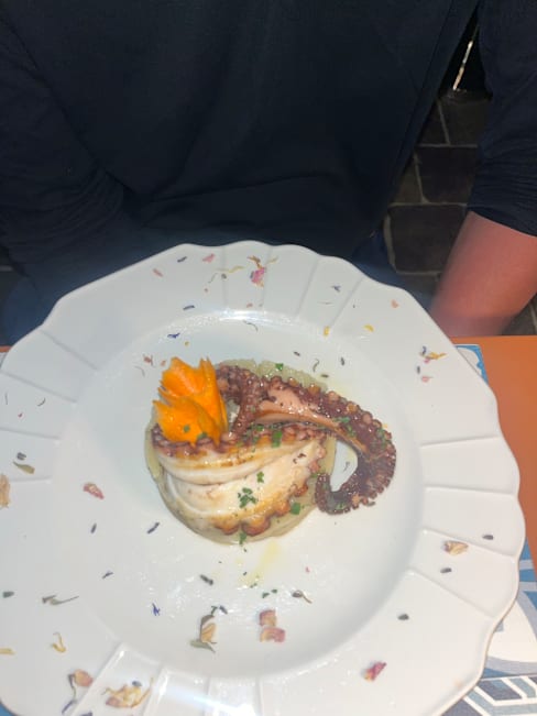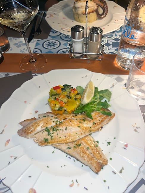 10/10Food delicious. My partner loves the octopus. I had grilled fish of the day. Beautiful wine although there was miscommunication as we ordered a 26euro bottle but were then charged 60euro . We were happy to pay this though as the wine and food were so good. The outside seating is very nice