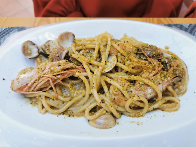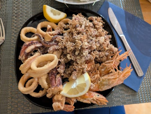 10/10This place is amazing. Definitely more of a local spot. Incredible terrace and the food is so authentic… we got the panella then two pastas and a cannoli… our best yet in Italy! Super affordable too especially with the fork discount. Definitely recommend.