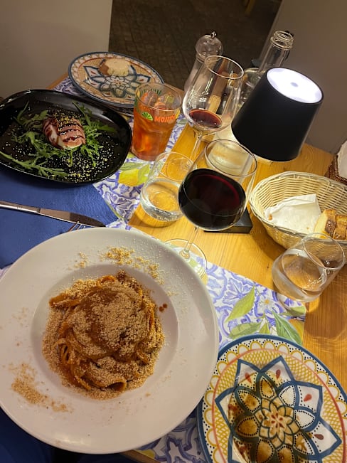 10/10This place is amazing. Definitely more of a local spot. Incredible terrace and the food is so authentic… we got the panella then two pastas and a cannoli… our best yet in Italy! Super affordable too especially with the fork discount. Definitely recommend.