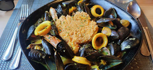 9/10Very interesting menu, heavy on fish, tried 5 different dishes in 2 visits and all were excellent. Price quite fair, portions substantial. A real find.