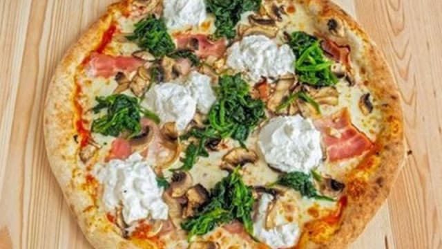 Molho de tomate biológico, mozzarella fior di latte, ricotta, surpresa vicentina, fiambre