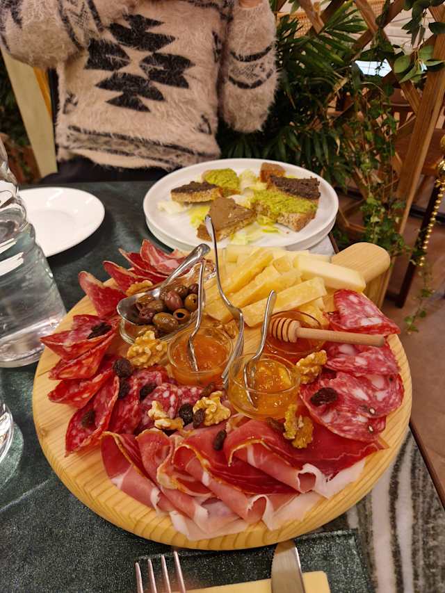 - Selezione di formaggi e salumi del territorio con marmellate di nostra produzione, olive bio di nostra produzione, frutta secca e crostini misti toscani