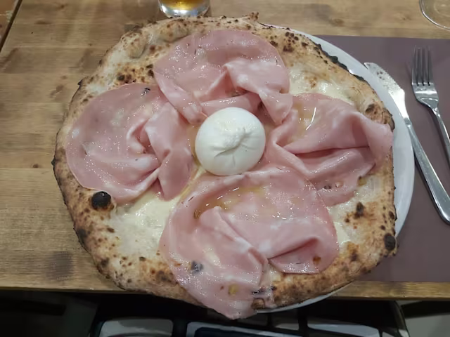 - Fior di latte, gorgonzola, noci, guanciale, olio EVO.