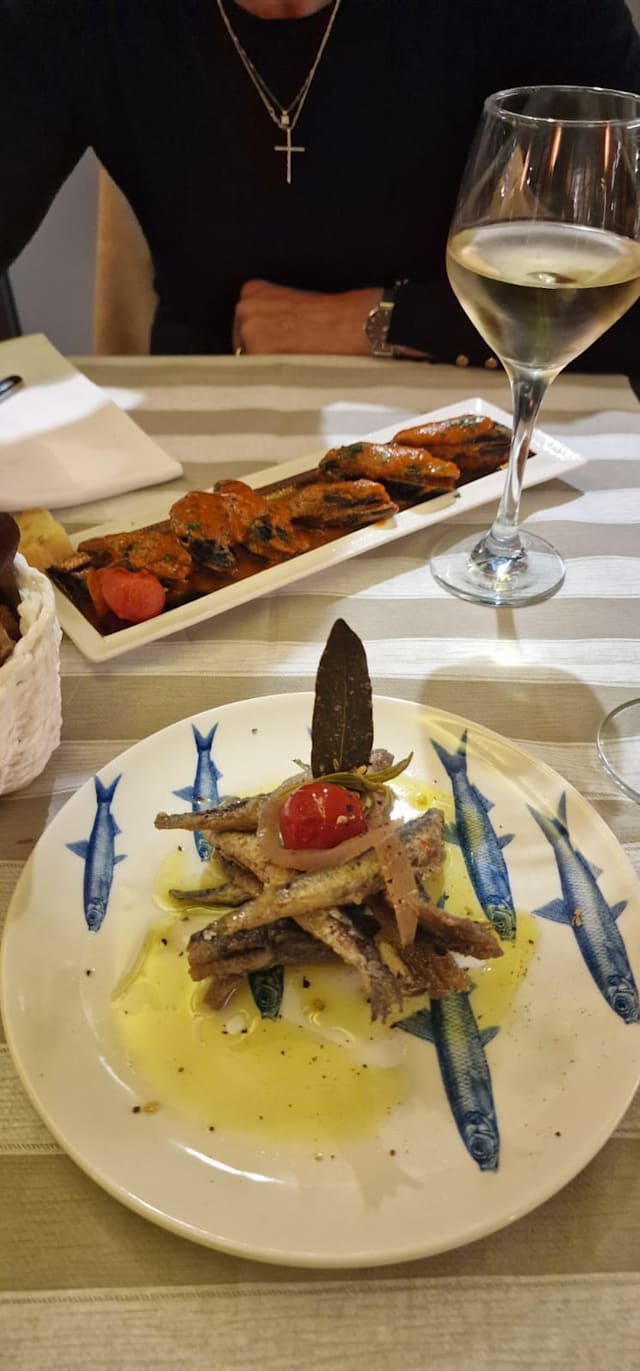 Piatto tradizionale ligure a base di pesce , verdure e salsa verde adagiato su una galletta croccante