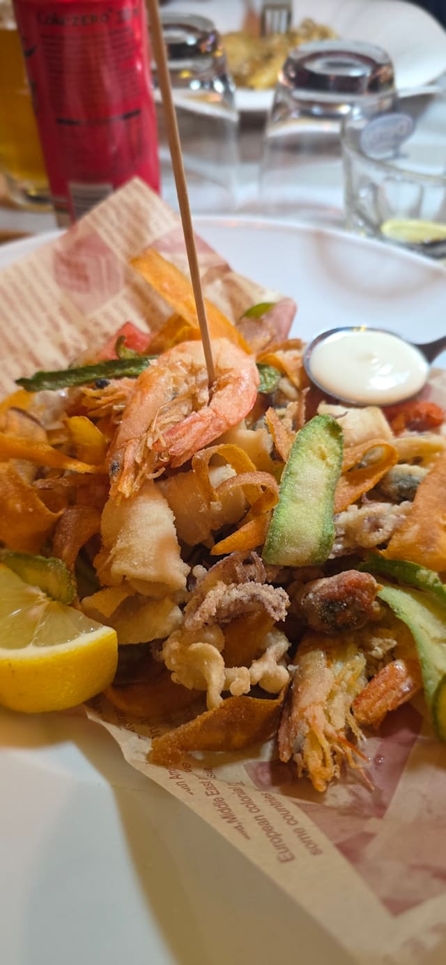 Frittura di gamberi ,calamari , paranza e verdure fresche