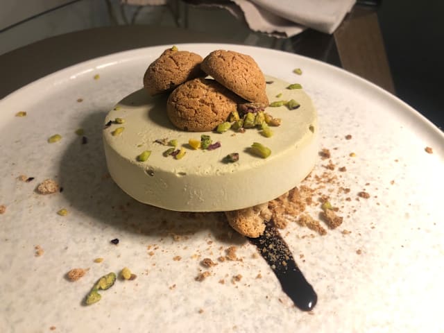 su cubettata di cantalupo, granella di pistacchio e dressing di balsamico