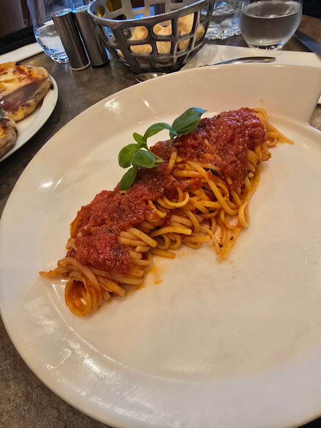 9/10Excellent gluten free pasta and pizza. The normal kinds also very good. Friendly and attentive staff. We felt very welcome. A bit noisy traffic from the main street passing is the only thing dragging the score down.
