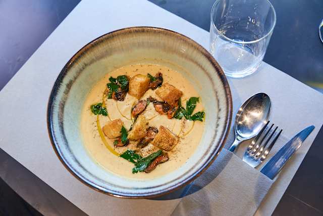 - Baccalà mantecato, porri, zucca e pesto agli agrumi