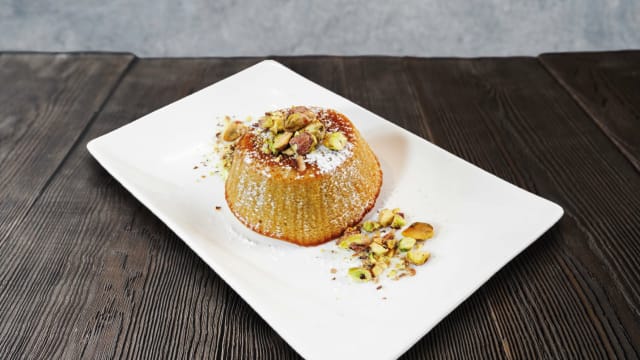 Salsa de blanca, mozzarella, orégano, mortadela, burrata fresca y pistacho.
