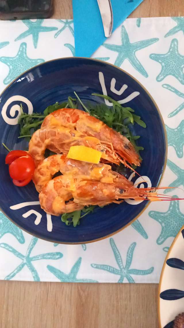 - Gamberoni alla griglia accompagnati da un'insalata fresca