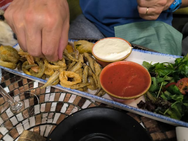 8/10One member of party vegetarian & found a lack of choice in previous Lille restaurants focussing on n French cuisine. Enjoyed this restaurant although some of the seating is very low if you are tall. I had a pizza & friend lasagne with mushrooms. Well seasoned & presented. Chianti approx 25euro which was ok. Lighting is slightly “bright” -would benefit from candles or leds on each table but all in all I’d recommend.