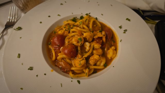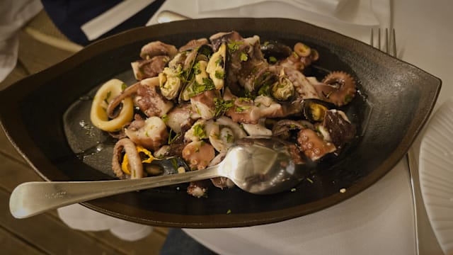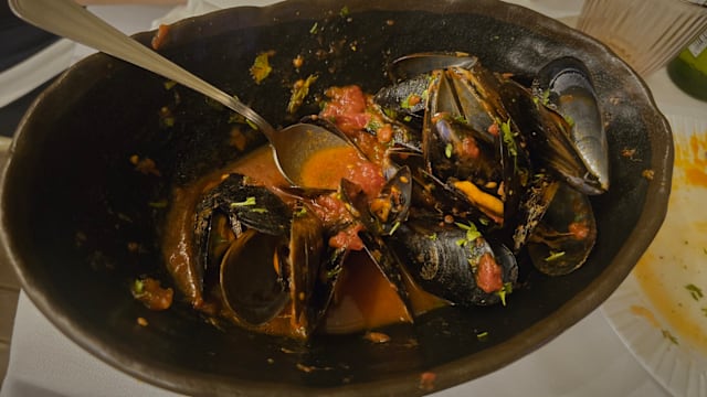 4.5/10Service was rushed. Cuppa de cozze had only a tomato flavor in the small amount of sauce. Seafood risotto was awful with a lot of small pieces of very chewy squid or calamari. Swordfish was good.