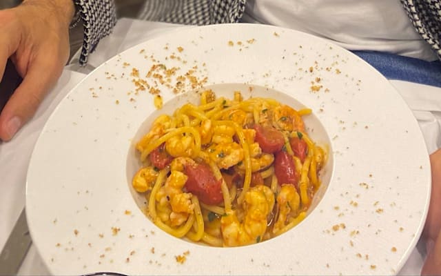 4.5/10Service was rushed. Cuppa de cozze had only a tomato flavor in the small amount of sauce. Seafood risotto was awful with a lot of small pieces of very chewy squid or calamari. Swordfish was good.