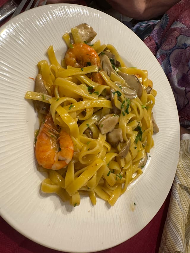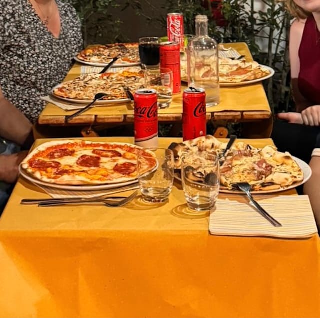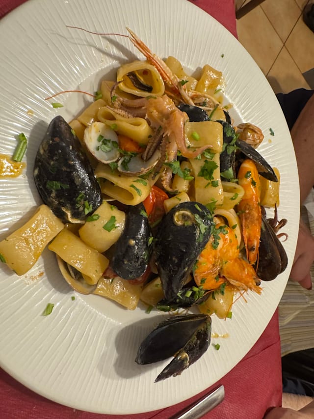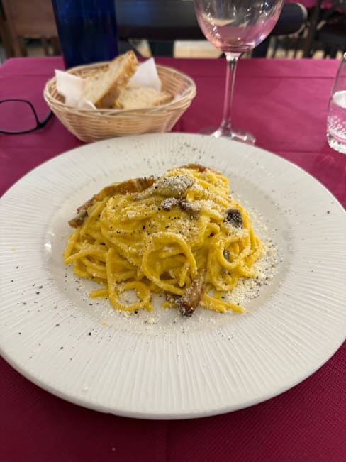 9.5/10Our first night in Rome and we were very tired and had the perfect meal to cap our day. The Bucatini All’amatriciana was excellent as was the Fettucine with Sausage, Squash Flowers and Sun-dried Tomatoes. The Tonorello alla Grecia was wonderful as well.