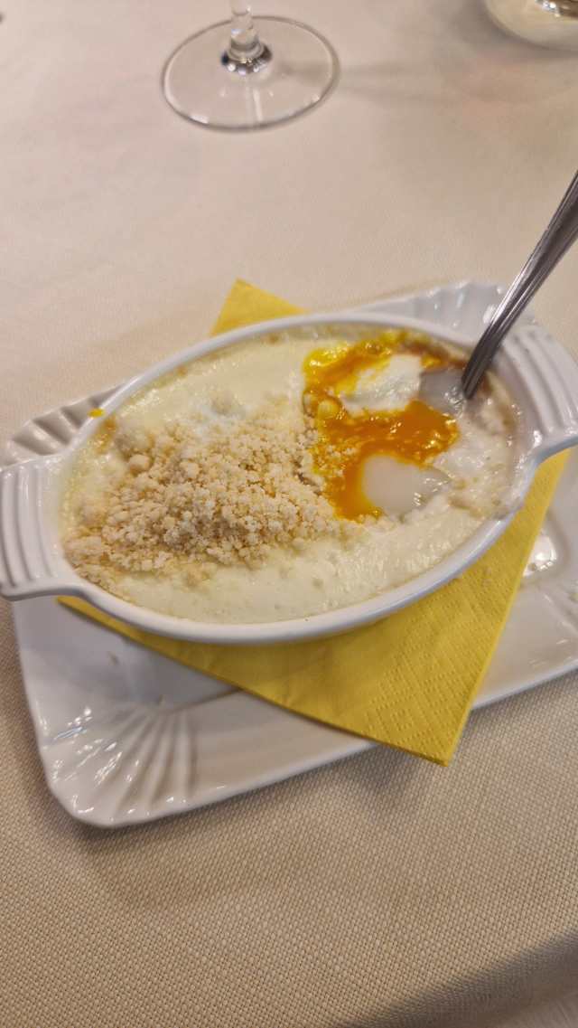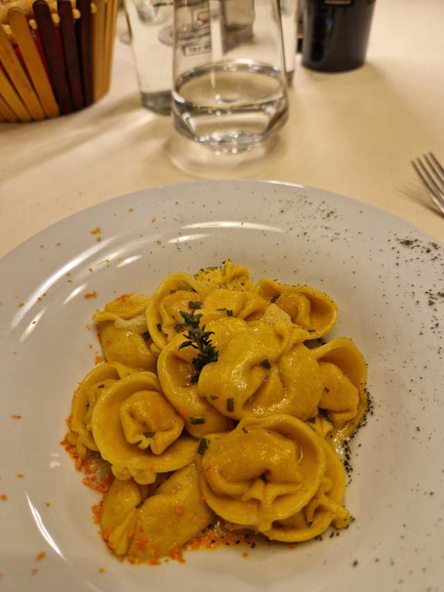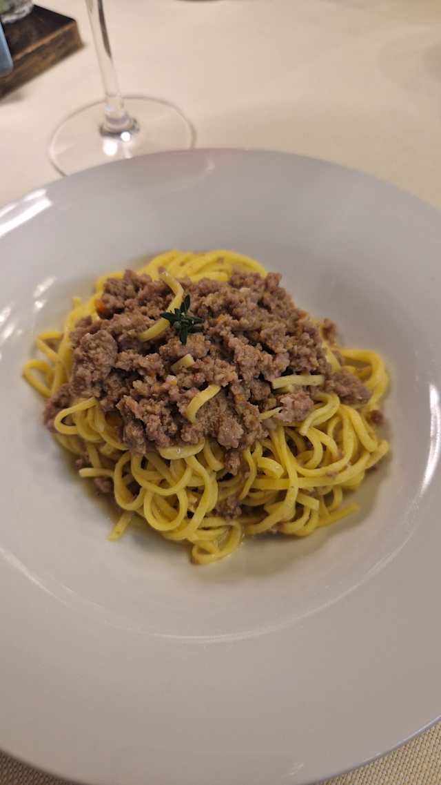 9/10This place was full of locals which a vibrant and noisy atmosphere. Unfortunately it was raining so the tables outside were unavailable. Food was in general good but not exceptional. My best plate was the tajarin with ragu di salccicia. Service was outstanding. They are well staffed to handle the load, and they were friendly and professional.