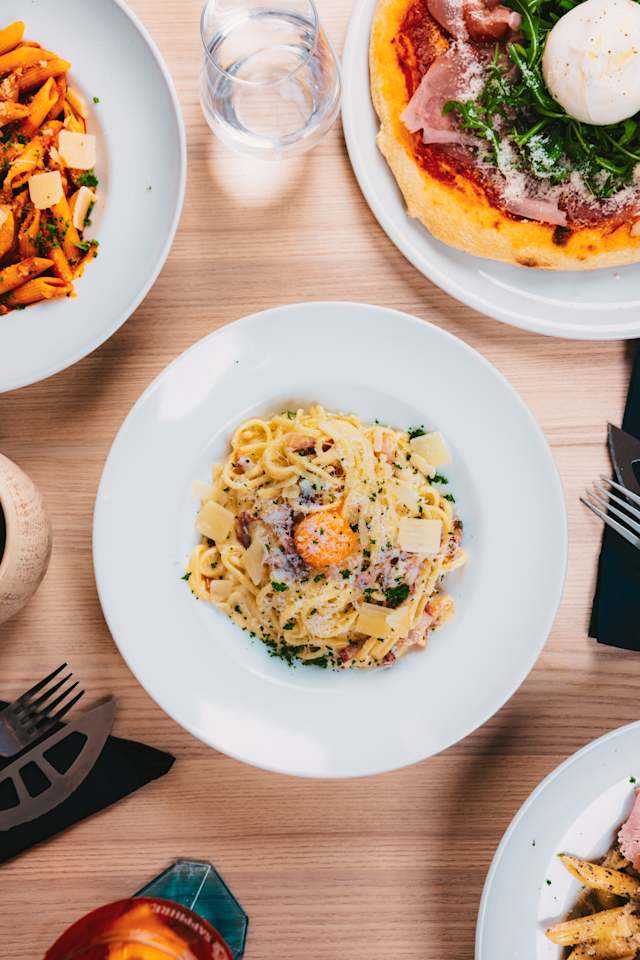- Guanciale, gorgonzola, parmesan, pecorino.