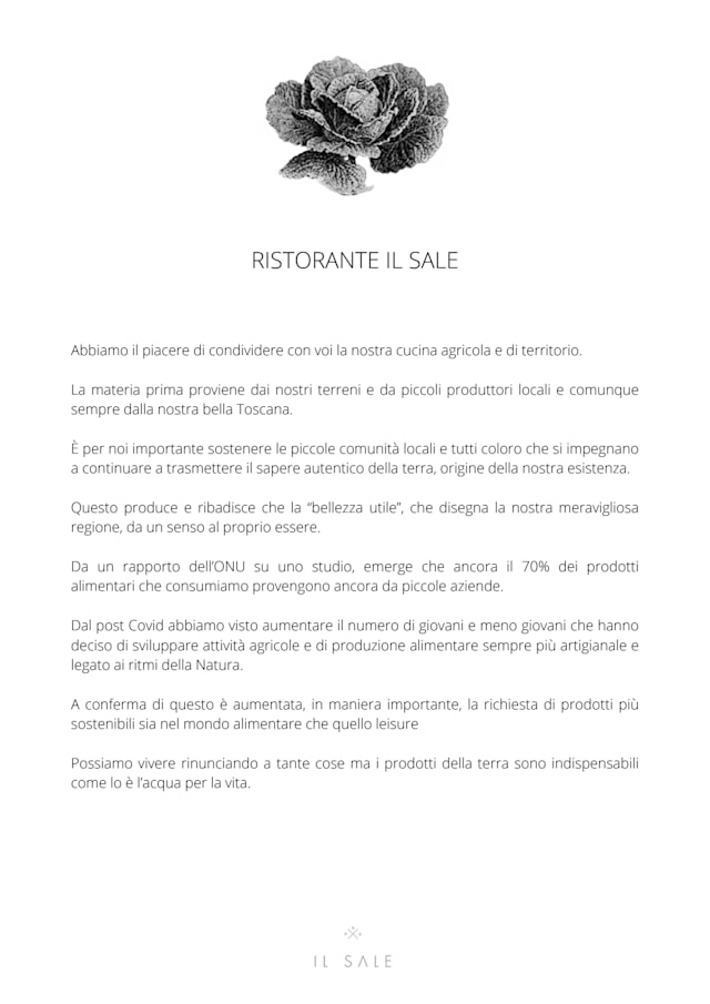 10/10Amazing place set in the hills of San Vincenzo. B&B that also cater at lunch times. Good amazing. Service excellent. Home made bread and their very own olive oil. Relaxed atmosphere. Check out the gardens and swimming pool. Grow their own veg too. Reason for visit anniversary lunch but will go again next year! Thank you Il Sale. We were not disappointed.