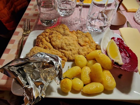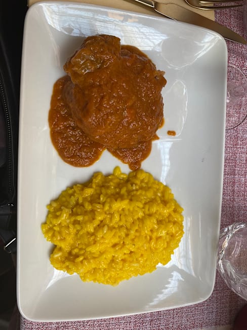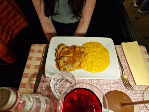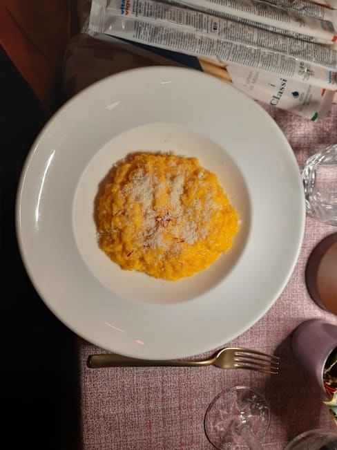 7.5/10The food was good, especially the gnocchi and the Milanese veal. I had to ask for the A/C to be opened and it took time to start working, so we felt too hot inside. The waiters looked tired, busy and seemed to be in a bad mood. The restaurant was packed with tourists, it is in a great central location close to the Duomo.