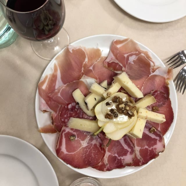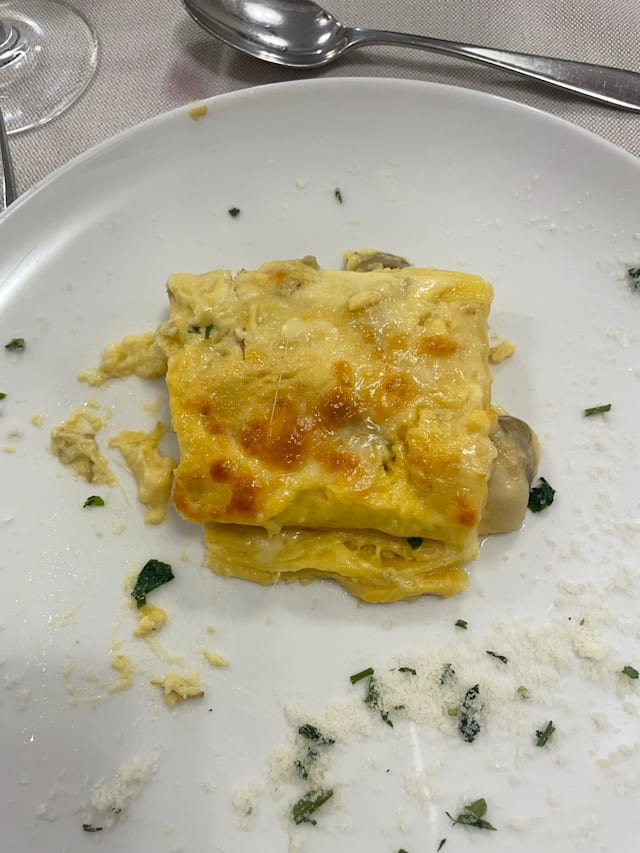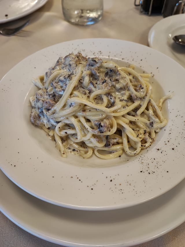 5/10The pasta dishes were very good and tasty. The lamb had a lot of fat on it. The waiter was in an awful rush and tried to remove our plates mid dinner, I explained that we had not finished yet. He returned to remove my plate before I had a chance to finish the salad. For dessert we ordered a Zuppa Inglese and it did taste of Alchermes and was delicious. Wine selection is good, we chose a Vino Nobile di Montepulciano.