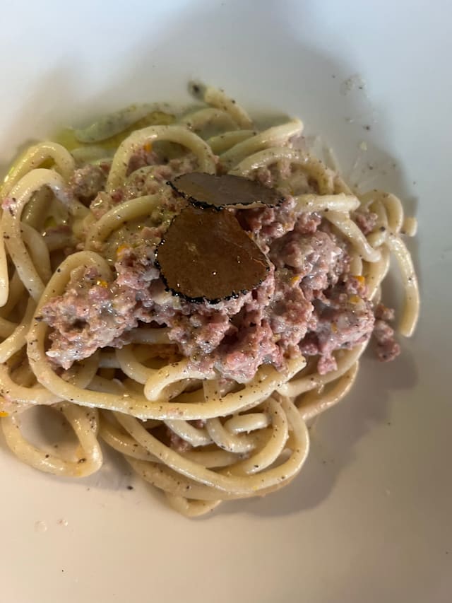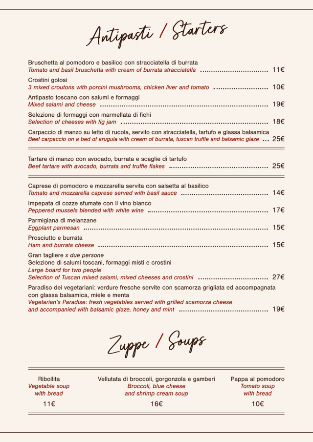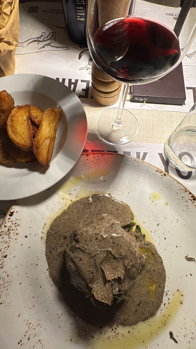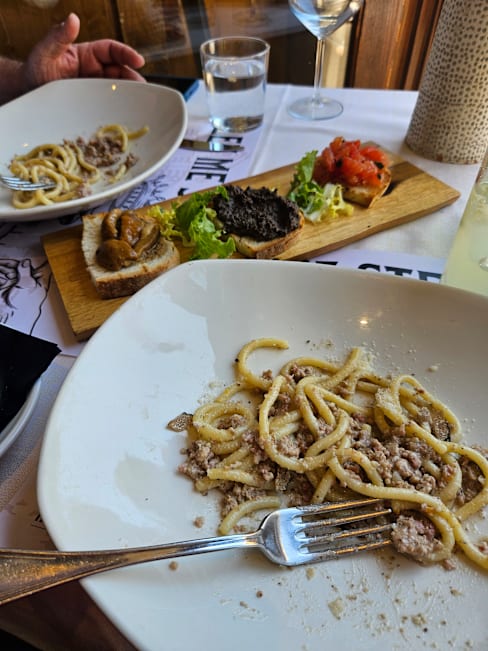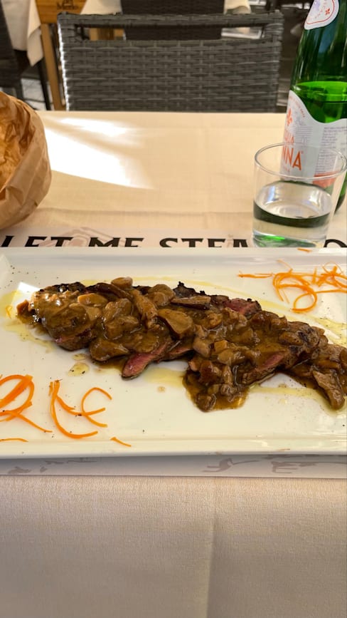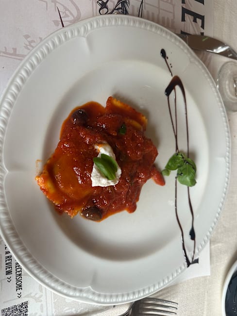 10/10We were promptly greeted and seated, with a table floor two and view of the Piazza. A glass of Prosecco arrived, complimentary. Our starter of melon and prosciutto was plentiful. The mains were gnocchi and sliced beef fillet,both with a sauce rich gorgonzola and walnuts. A glass of reserve chianti added to a memorable meal.