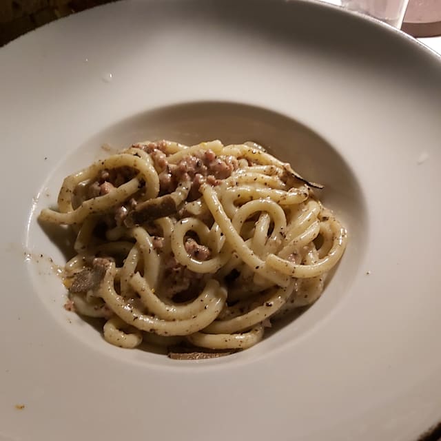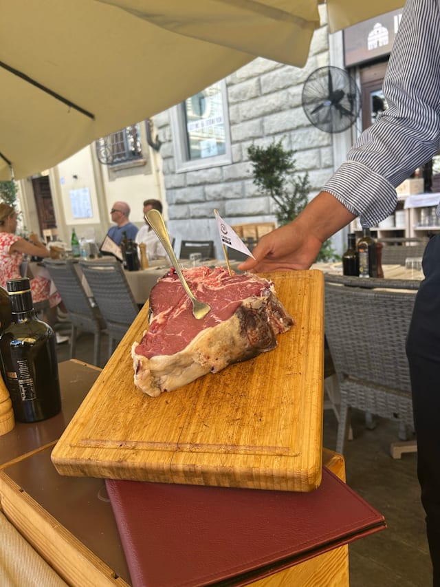 9/10The food was very good. Everything we had was delicious. Not quite the gourmet that we had in Tuscany for the past month, but close. The wait staff was charming and friendly. The ambiance was lovely. We sat inside. We prefer a little quiet, but the outside dining offers the view and the lively atmosphere. The only complaint is the quick turnaround. Florence being molto touristic, we did not enjoy the relaxing meal with a bottle of wine that we are accustomed to. No sooner was the appetizer cleared and they were bringing the next course. I would say you have to order your next courses after your antipasti if you want to slow it down.