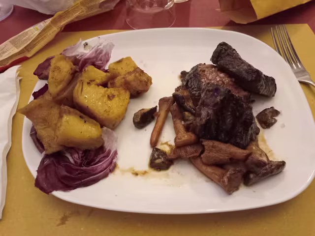 - Buttata con pancetta all'aceto balsamico su letto di radicchio