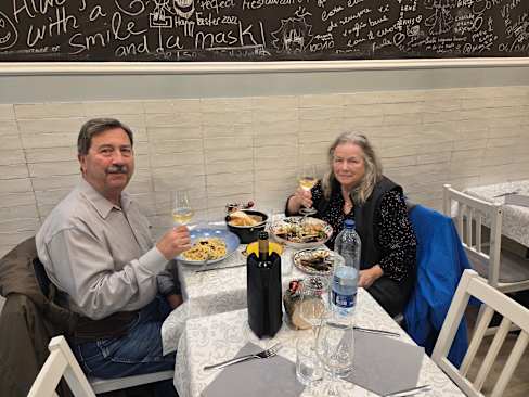 4.5/10+1Very kind and accommodating staff... When they were available. Full of food tour tagliere tasting groups, 2/3 of patrons. Sformatino of zucchine with Parmesan cream was delicious, as was the cut and cook of the guanciale on the carbonara. Nicely curated small wine selection, though a bit pricey. Table not ready for our reservation, but this is a small space, and they generously offered glasses of prosecco while we waited. Ricotta and porcini ravioli (5 for €23) not very strongly tasting of mushroom, and the pretty saffron cream on them was a bit low in quantity and over reduced/tacky/dry. Tagliatelle on the carbonara was overcooked. Torta Caprese had spot-on cocoa and almond taste, but was a bit dry/crumbly, came with canned whipped cream and only a slight afterthought of pistachio cream. Staff generously offered a limoncello digestivo Afterwards, but getting their attention was not particularly easy. €95 for 1 app, 2 pastas, 1 dolce, and 3 glasses of wine (2 people). A bit too hip.