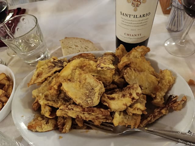 9.5/10Very good quality of dishes, prepared in a local and original way, fancy home made pasta, good chianti wine of the house, served in a nice terrace by a very kind and professionnal waiter. And finally prices were very attractive.