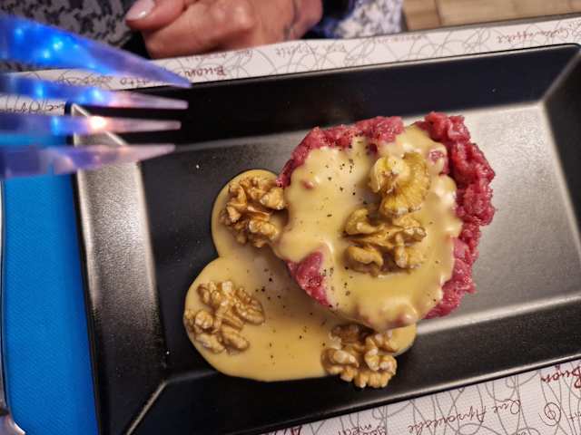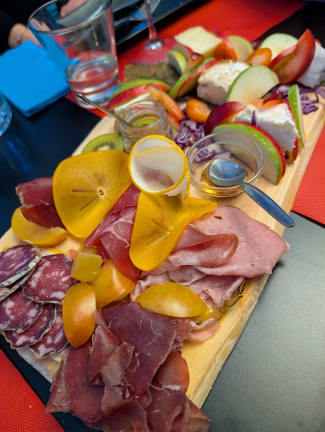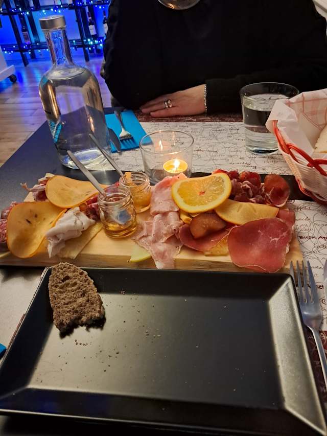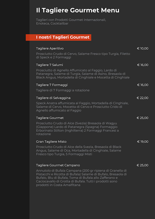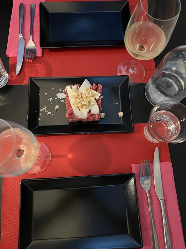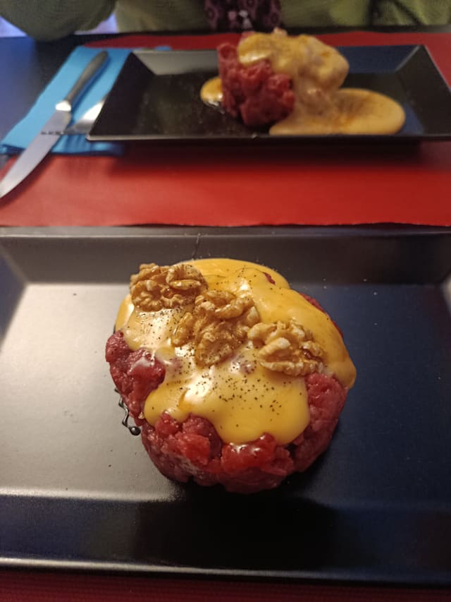 10/10+2When you have a great time at a new restaurant, there’s some trepidation making a return visit. Will it be as good? I can happily say Tagliere Gourmet was great both times! My wife and I recently brought her Mamma here. We were so impressed with amazing tagliere that are not the run-of-the-mill salami and cheeses you find at most bars. So when my sisters-in-law came to Torino this weekend I suggested this spot. Some of us had their unique Steak Tartare (the Mozzarella-di-Bufala-topped one and I had their Fondue Tartare with fondue cheese and walnuts). Splendid taste and texture. When Franco brought out the huge wooden tagliere board, everyone was in awe of the size and selection. Highlights: Bresaola of Japanese Wagyu beef, Mocetta of boar and Speck of smoked duck and a French Brillat Savarin cheese. Excellent cocktails (my Vesper was A+). My advice is: relax with your drinks and chat with your friends. Franco cuts the tagliere to order so it takes some time but the wait is worth it!!!