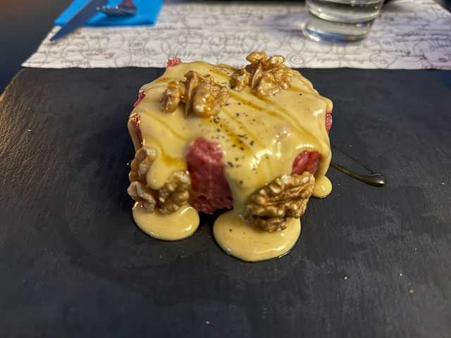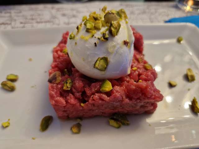 10/10A great discovery, proprietor Franco has created a very special spot. The menu focuses on 2 things: tagliere and a variety of steak tartare. For our 1st visit we chose taglieri, sliced on-the-spot to be freshest. We were both intrigued by the tagliere of the Amalfi Coast and were ordering 2. Franco suggested that we have 1 Amalfi and 1 large mixed platter with 5 salame and 5 cheeses. He said that would give us lots more variety to enjoy. This wasn’t an upsell, as it was less pricey than if we’d ordered the 2 Amalfi. Fantastic presentation! Franco explained each item, all wonderful. Highlights on the Amalfi were the Buffalo salame and Bresaola and a Buffalo blue cheese. On the mixed tagliere standouts included fresh salame from Turgia, slices of raw elk-meat, donkey-meat salami and cheeses such as Cabra aromatized in a chestnut leaf and an Erborinato of sheep’s milk. Also a nice menu of cocktails. I had an excellent Negroni and my husband said his Vesper was fantastic. Grazie Franco!