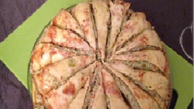 Cicoria ripassata al pomodoro, ricoperta con pasta della pizza e cotta al forno