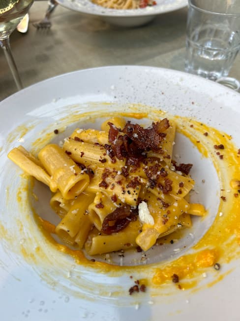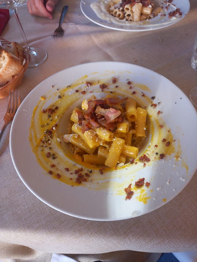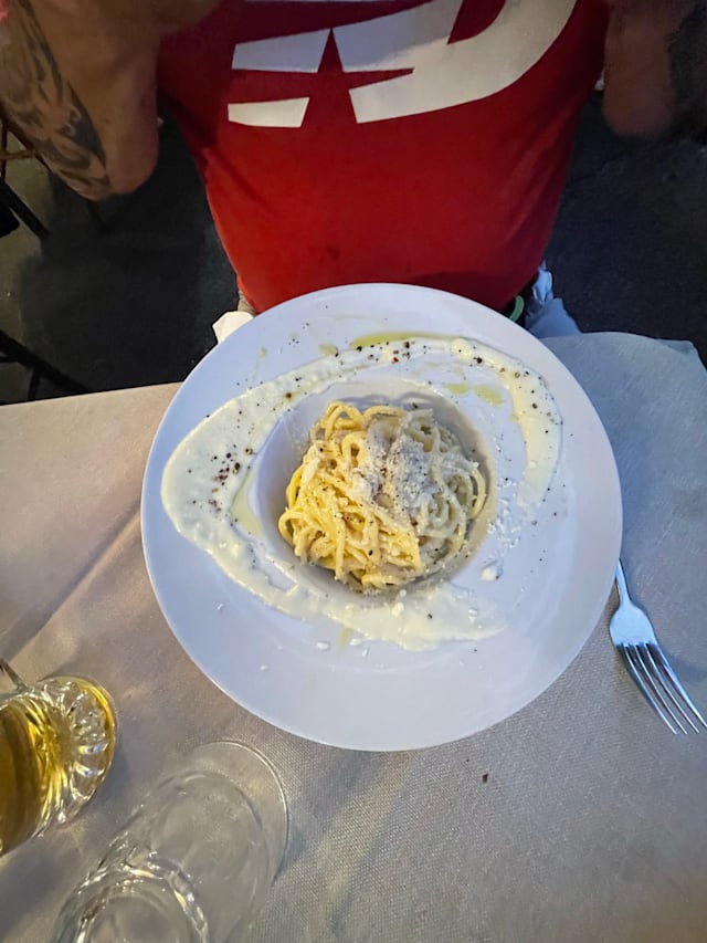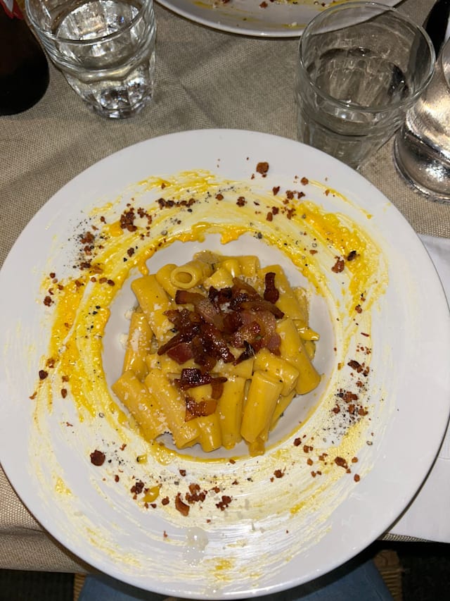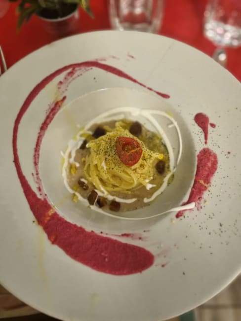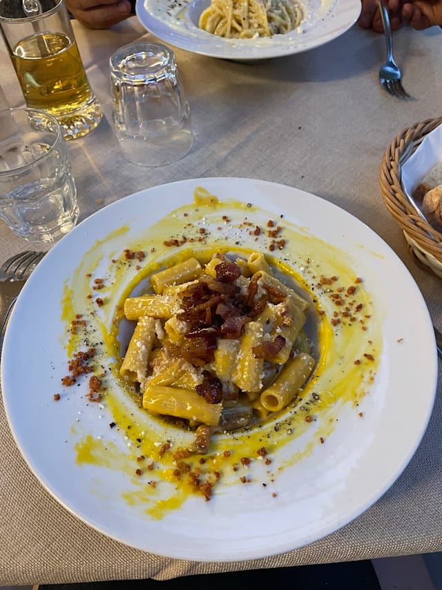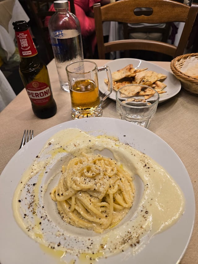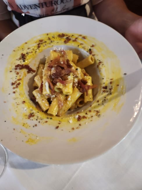 10/10DELICIOUS!!! off the beaten path. Close to Roma Termini and Colosseum part of town! The most delicious pasta dishes! The Carbonara….(chef’s kiss) and their Pomodorella (spicy pomodoro) out of this world…let’s not forget the tiramisu that was unlike any other I’ve ever tasted. This is a little hidden gem and well worth a visit! We went twice during our visit to Rome. Super friendly staff as well! Mauricio was so nice and funny, really made our night!