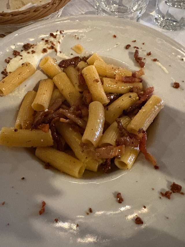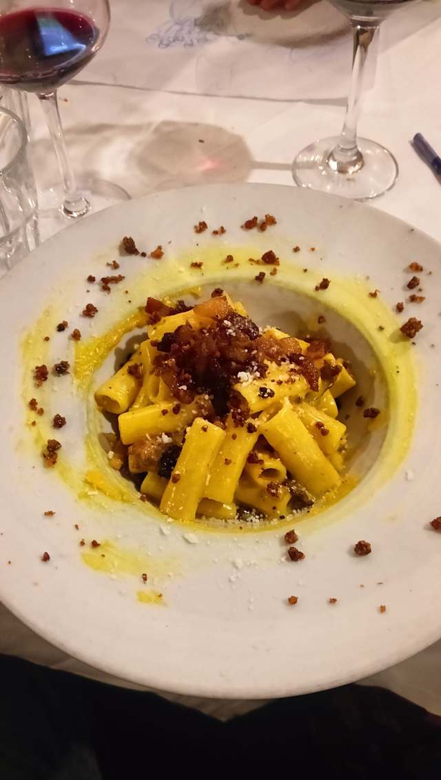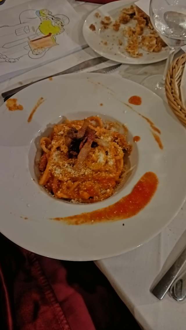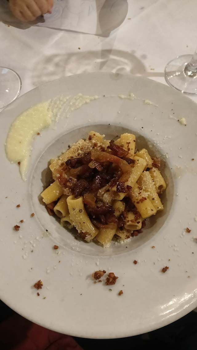 - Polpettine di carne di manzo con sugo di amatriciana ricoperte con crema di formaggio e guanciale grattugiato