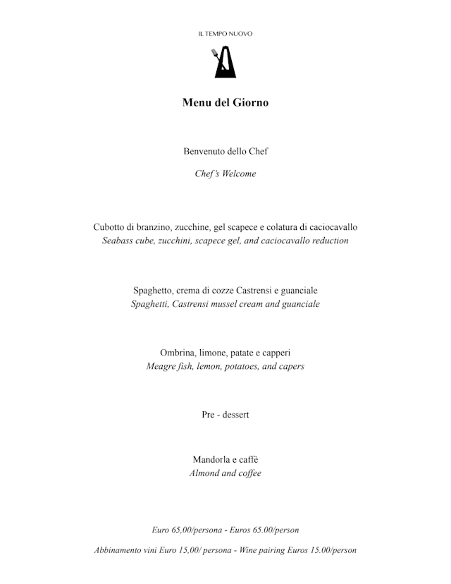 Menu del giorno€65 per guest