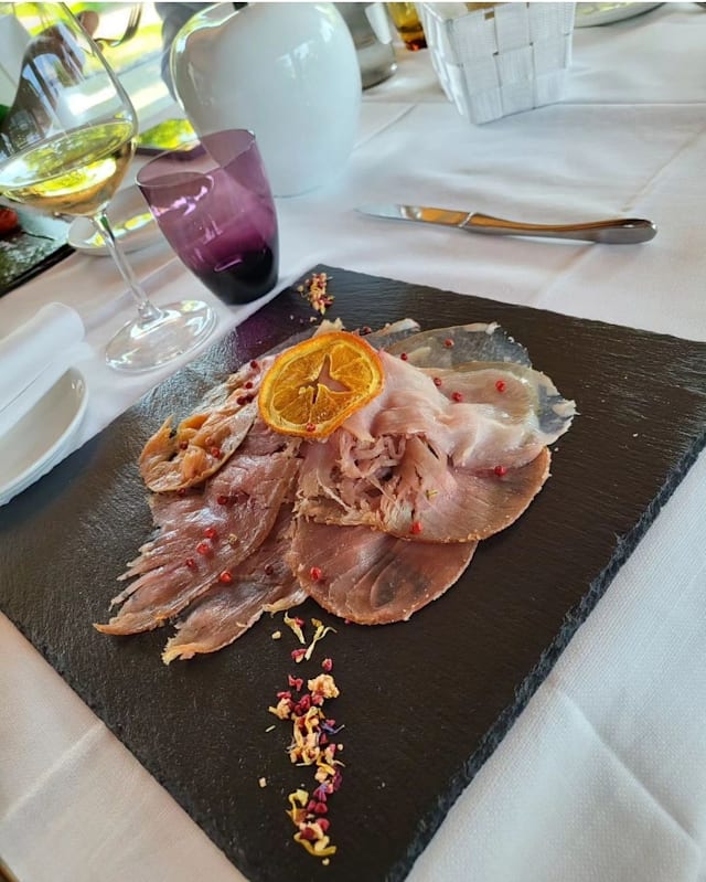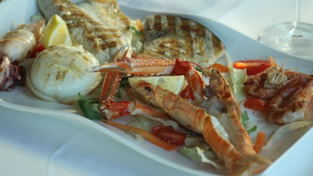 Tris di Carpacci, capasanta gratinata, polipetto alla luciana e parmigiana di mare