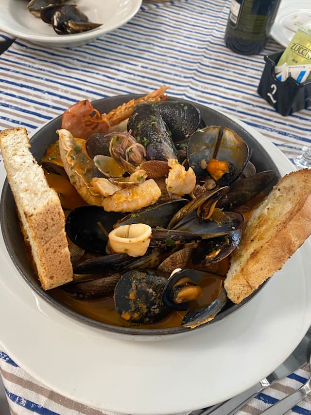 9.5/10Simple but nice arrangenent , quite and with tables well spaced.There is also the possibility to dine outside in front of the restaurant however the main road along the sea is very close . Very good quality of the fish food with fresh raw material well prepared and presented in generous quantities. I would definitely recommend their chowder "Il Ciupin" with abundant clams really tasty and delicate . Careful service which puts you at ease. Short and complete wine list , covering most of the topical territories , with a more than acceptable recharge. To complete the picture there is also the possibility to have wood oven Pizza but with such fish food offer I wouldn't go for it . Finally with The Fork discount definitively outstanding all in all.