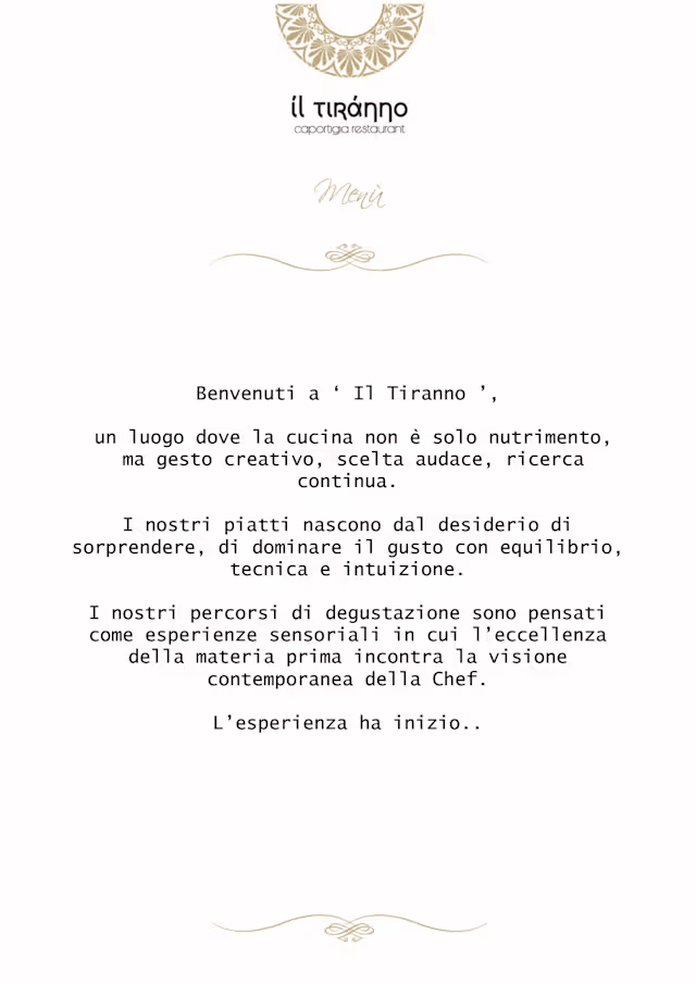 The restaurant was very pleasant with friendly staff. We chose the Tiranno Experience tasting menu, everything was beautifully presented and really delicious.