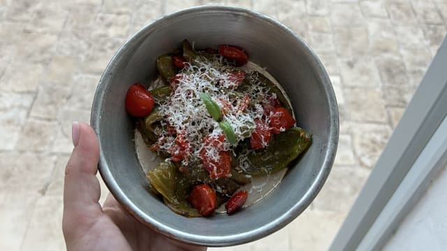 Ricordo di un peperone ripieno: tartare di podolica, olive, capperi e peperone